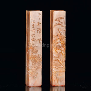 | 拍品名称 | 林清卿作、潘恭铎篆 都成坑石 花卉薄意对章 |