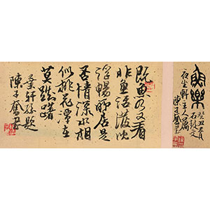 题跋释文:1. 鱼乐。癸丑三月石鼓文。夜坐轩主人属,陈子奋书。