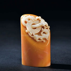 | 拍品名称 | 旗降石 双螭戏钱椭圆章 |
