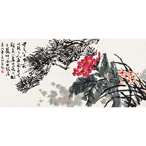王个簃(1896-1988) ,名贤,字启之,号个簃,室名霜荼阁、还砚楼,江苏海门人。吴昌硕入室弟子,工诗词书画,善写意花卉,恪守师法,笔墨酣厚,喜以篆籀法、草法写藤本植物。上海美协副主席、西令印社副社长、上海画院画师。
