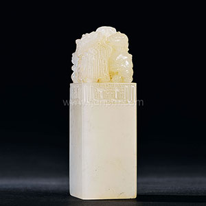 | 拍品名称 | 荔枝洞石 五螭拱钱钮方章 |