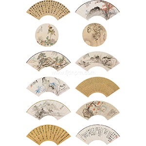 | 拍品名称 | 陆润庠(1841-1915)、吴伯滔(1840-1895)等 书法山水扇面(十二件) |