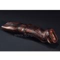此作品材质为优质海南黄花梨,花纹美丽、色泽柔和,作者依形而就,雕琢竹筒,别趣盎然。