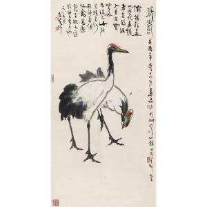 章友芝题款:仙鹤难画,而历代画鹤者甚伙,能入目者实无多。乃珖兄以作笔精墨妙,形神兼备,仙禽高洁,得呈现之,所以难能可贵者也。一九八一年巽,友芝草草。