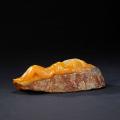 此石为一条晶莹剔透的黄色冻石黏着在顽石之上。既难以成材,作者便干脆因形就势,以写实手法雕刻裸体美人卧于石上。白居易《长恨歌》云:春寒赐浴华清池,温泉水滑洗凝脂,侍儿扶起娇无力,始是新承恩泽时。此情此景,暗合诗意。
