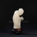 此石为白色荔枝洞石,晶莹剔透,结晶感极好。作者以传统手法圆雕罗汉形象,姿态自然生动,神态一派祥和。所谓“开心见佛,各显神通,相互比莫,佛力无穷。”或可作此解。