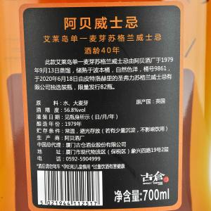 | 拍品名称 | 1979年 阿贝40年单一麦芽威士忌 (全球限量82瓶) |