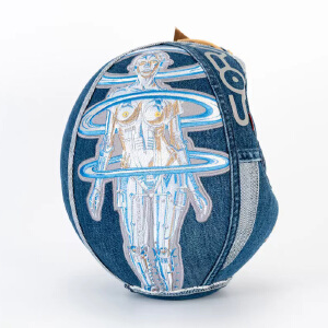空山基花了1年左右的时间研究,2017年秋天有了现在的形状“日本传统吉祥物“不倒翁”达摩蛋由于日本比较注重环保,所以没有外包装。牛仔达摩的底色是由10个零件构成的,从切分的零件开始连接刺绣,漂亮地贴在弯曲的表面上是相当难的。本拍品的牛仔布用了空山基×2G联名牛仔裤的布料来制作。