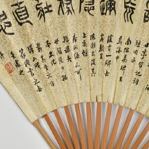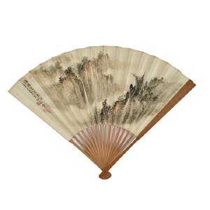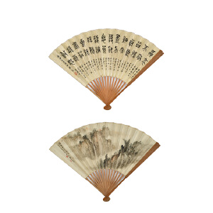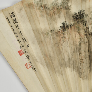 | 拍品名称 | 黄君璧、盛光伟《烟山晴雨·篆书》成扇(1941年作) |