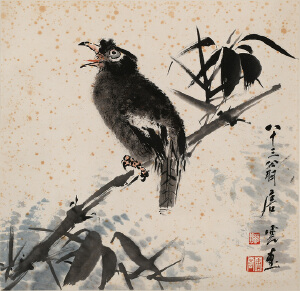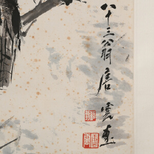 唐云(1910~1993),笔名药翁、大石、大石翁、侠尘,浙江杭州人。画家,文物鉴定家,擅花鸟、山水,偶作人物。1938年至1942年先后在新华艺术专科学校、上海美术专科学校教授国画。后弃职,专事绘画。历任上海中国画院画师、代院长、名誉院长,中国美术家协会理事及上海分会副主席,中国画研究院院务委员,上海书法家协会名誉理事,西泠印社理事,上海市文物保管委员会委员,上海博物馆鉴定委员。为海上花鸟画“四大名旦”之一。出版有《唐云花鸟画集》、《革命纪念地写生选》等。