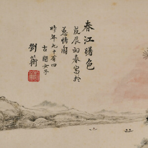 款识:春江曙色。戊辰初春写于蕙愔阁,时年九十有四,古闽女子刘蘅。