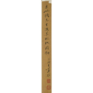 题签:朱屺瞻先生泼墨枇杷图轴。丁卯右军题。