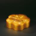 福州脱胎漆器产品大致分为实用和欣赏两大类,这件“梅花盒”便属于实用一类。然而尽管为实用类物品,在工艺上依然一丝不苟。以五瓣梅花为基本造型,金、黑、红三色艳丽明快,搭配和谐,细腻平滑,光亮如镜,充满简洁雅致之美。