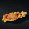 此石为温润通透的高山石,色泽橙黄中带一点儿红意。作者运用巧思,依形而就,将其雕刻为螃蟹与贝壳,寓意一甲传胪。