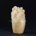 此白田黄石形饱满,质如羊脂,石中隐隐露出的淡黄色更让此石显得雅致深藏,余韵袅袅。石上作群螭舞钮,群螭相互穿插避让,向背有致,造型多变。构图中不断出现的曲线让此作动势十足。