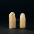 套章两方一组,一为汶洋石,一为高山石,石材之美令人惊叹;质地匀净微透,温润油凝,造型古朴典雅,雕工精美传神,打磨细润,佳印良材殊为难求。
