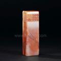 此杜陵文字平头章石型规整端正,质地坚硬,色泽明快,略见桃花点,具有良好的通透感。章体上部四面隶书阳刻岳飞《满江红》词,粗粝的底部让文字显得更加典雅,富有书卷气。