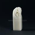 章为芙蓉石,色白皙质油腻。印章章型硕大,造型方正规整,圆雕飞龙纹纽饰,气度不凡,龙首高昂双目炯炯,龙口喷水堪称点睛之笔,此状恰似威龙腾飞之举。