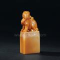 此汶洋石石型规整,色泽典雅,质地莹润,几无瑕疵。印钮作一古兽前足矗立,后足深蹲,昂首挺胸,器宇轩昂。钮下四周饰以类青铜纹饰,精致古雅。整件作品端庄大气。