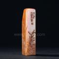 该薄意方章为工艺大师徐丹所作,章质采用上佳都成坑石,色泽亮丽,质地细腻,温润圆滑,倍有手感;作者运用薄意雕刻手法,将中国传统绘画技艺巧妙地呈现在石面上,一支桃枝延伸而出,石桃累累,熟色可餐。