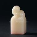 此汶洋石兽钮章色泽清丽,质地细腻纯洁,无裂无格,如白玉中出。石上雕一兽回头盘旋,线条简洁,造型古雅。