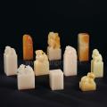 此为台湾篆刻家薛志扬先生所刻印章十件,印章石型规整端庄,或作兽钮,或作薄意,或为平头素章,石质皆纯净温润,颜色饱满,具有极高的收藏价值。