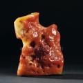 此芙蓉原石型如湖石,石身分布的若干个大小不一的小洞让这件石头颇得“瘦、漏、透”之雅韵,石型可谓殊有特色。而大面积的红色饱满精神,娇艳欲滴,石质如脂似玉,是创作的极佳材质。
