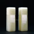 这对文字对章石质通灵温润,纯净无瑕,比例完美,印边饰以甲骨文字,堪称最佳之创作选择。凝眸谛视,陈达先生结字之风采、运刀之精妙,令人玩味 不尽;置于案头,则一种简约雅逸之书卷气息如暗香浮动。虽然目前市场上仿效者颇众,而能得个中三昧者则罕有。古人云“气韵不可学”,不可学之处,端在于涵 养与境界。