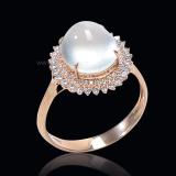 | 拍品规格 | 18K玫瑰金镶嵌天然冰种翡翠蛋面戒指,主石大小约为10×9×6mm,总重量约为3.44克,指环大小为15。 |
