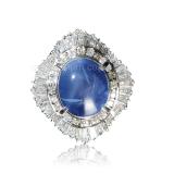 | 拍品名称 | 天然星光蓝宝石配钻石戒指 |