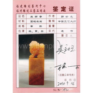 | 拍品名称 | 郭功森 | 荔枝洞石 太狮少狮钮方章 |