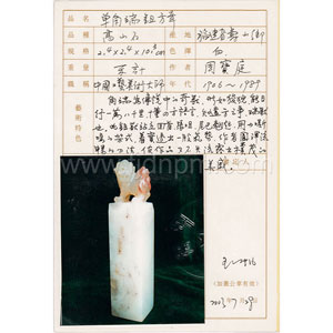 | 拍品名称 | 周宝庭 | 高山石 单角瑞兽钮章 |