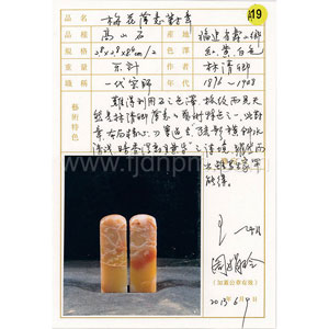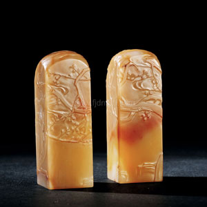 | 拍品名称 | 林清卿 | 善伯洞石 梅花薄意对章 |