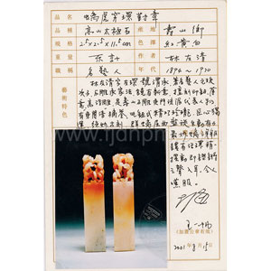 | 拍品名称 | 林友清 | 高山石 螭虎穿环钮对章 |