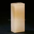 这枚荔枝洞石色泽白中微泛淡黄,纯净温凝,莹澈灵透,有飘逸出尘的观感。格局为六面方,在顶部浮雕博古钮。北宋大观中,徽宗命王黼等编绘宣和殿所藏 古器,成《宣和田古图》三十卷。后人因将图绘瓷、铜、玉、石等各种古器物的画,叫做“博古”。印纽引入博古纹始于清代周尚均,所取材于青铜器。这枚博古印 纽取自青铜器凤纹,雕刻工稳流畅,充满典雅之美。