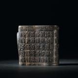 此件为汶莱产沉水料,香气怡人,形制扁阔,结字装饰,上方有博古回纹。刻“百寿字”、“百福字”,寓意“百福百寿”。“百寿字”这一装饰手法,在传统吉庆题材中相当流行。如文房器具等物件,常有此类纹饰,有祝主人福寿绵长之意。此件雕刻之“福”“寿”均结字工稳,笔意翩然,可谓运笔如刀。