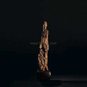 达拉干产沉香为星洲系沉香中之上品,其所带有的人参香味,是其他沉香品种中没有的。野外采集天然沉香后,采香人会把香结挖出,并用凹槽雕刀,慢慢将软木部分刮、削去除,留下含油的部分。故此,采香人所遗下的原木质面大多会形成高低起伏的块面效果,犹如雅玩供石之质感。在石形山子中,也将此类天然的肌理风貌,稍作处理,大量保留原生态之面貌,略做修整,使之更为接近文人雅玩所青睐的造型,这类手法,在历代沉香山子、陈设中均不常见,别有奇趣。
