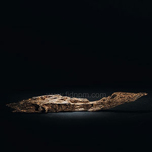 此件为西马沉香,所谓西即西部,马为大马,是西马来西亚之意。其形态自然,犹如戈壁山石,香韵甘中带凉,甚为醇厚。沉香原为树木受伤后为真菌所侵,产生结油,本就千姿百态,再经自然界风雨洗礼,往往形态充满造物之妙。采集之后,经过削劈挖凿,则又会增添一种沧桑、厚重的美感。这一类材质,有时不雕即已有别致韵味,其本身即可看做一件天然造就的艺术品。